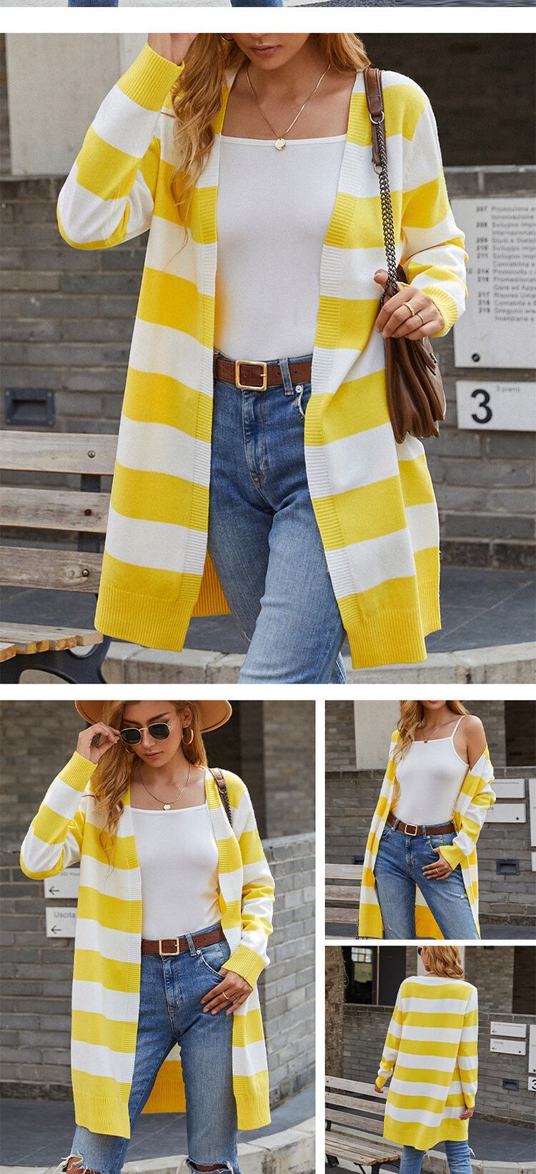 送料無料 レディースストライプカーディガンセーターロングステッチ秋冬Vネックニットウーマンストリートルーズシンコートウールコート オータム 秋物 ウィンター 冬物 AE36656629002139453