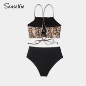 送料無料 SEASELFIEスネークプリントネックビキニセット女性セクシーレースアップクロップタンクツーピース水着2022水着水着 AE37766620119712554