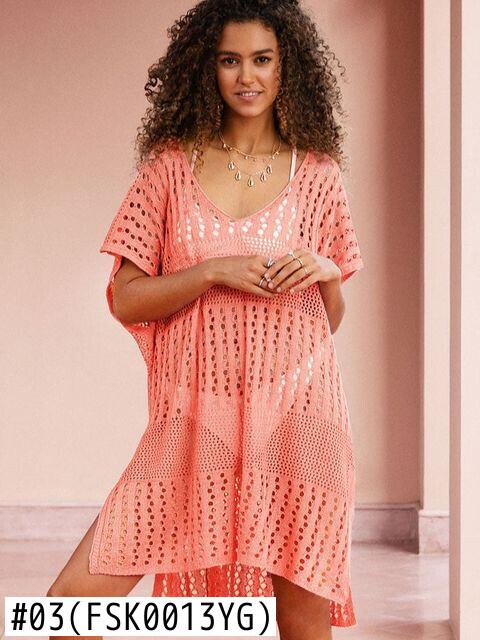 送料無料 SEASELFIE中空アウトビキニカバーアップホワイトセクシーVネック半袖スプリットチュニックカフタンカバー女性2022ビーチウェアミニドレス ショート ハーフスリーブ AE37766696442649464