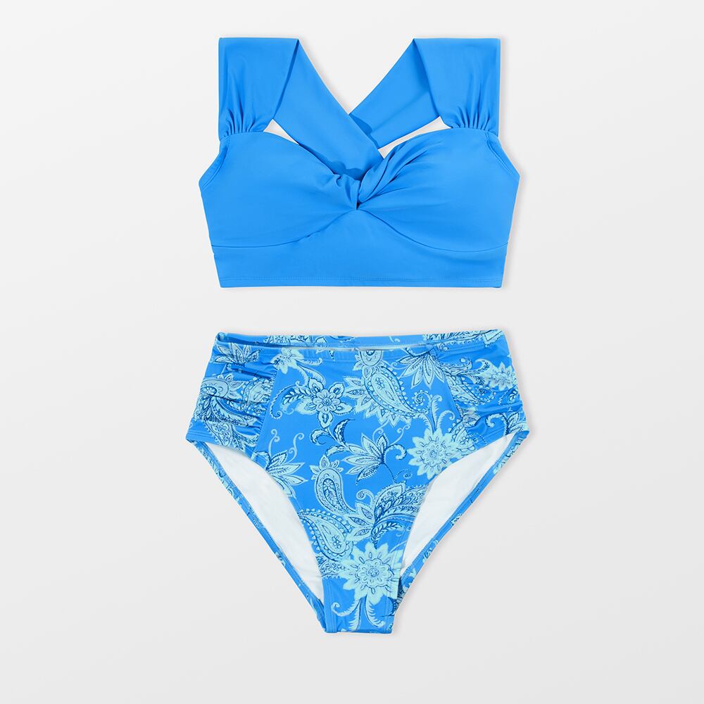 送料無料 プラスサイズツイストバックネクタイウエストビキニセットレディースブループリントセクシーラージサイズツーピース水着2022ビーチ水着 大きめサイズ AE37766694534317223
