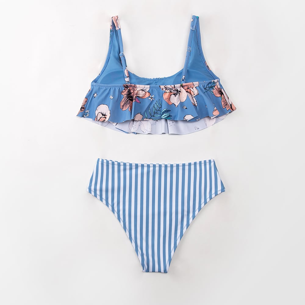 送料無料 SEASELFIEブルーフローラルストライプミッドウエストビキニセット水着女性バンドータンクビキニツーピース2022水着水着 花柄 AE37766695313510292