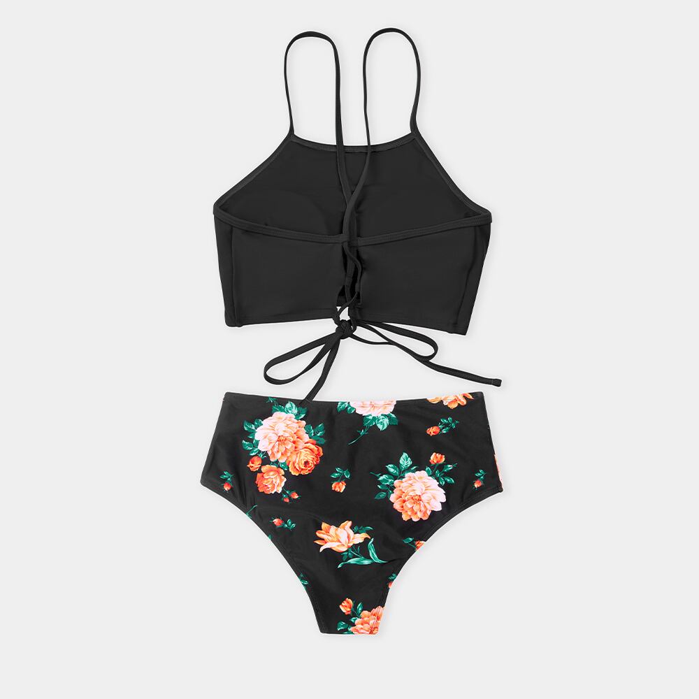 送料無料 SEASELFIEレースアップネックビキニセット女性グリーンフローラルセクシークロップタンクツーピース水着2022水着水着 花柄 AE37766613766956434