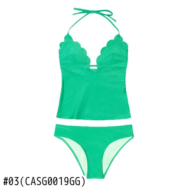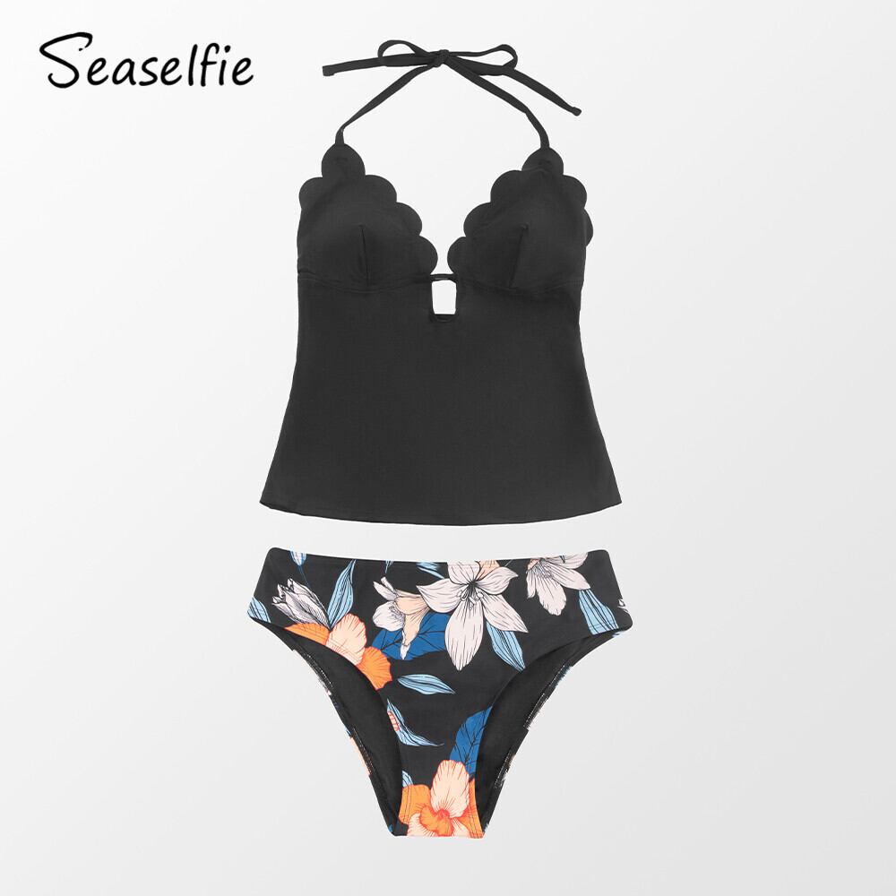 送料無料 SEASLEFIEスカラップホルターミッドウエストタンキニ水着女性セクシーなVネックビキニセット2ピース水着2022水着 AE37766694895424930