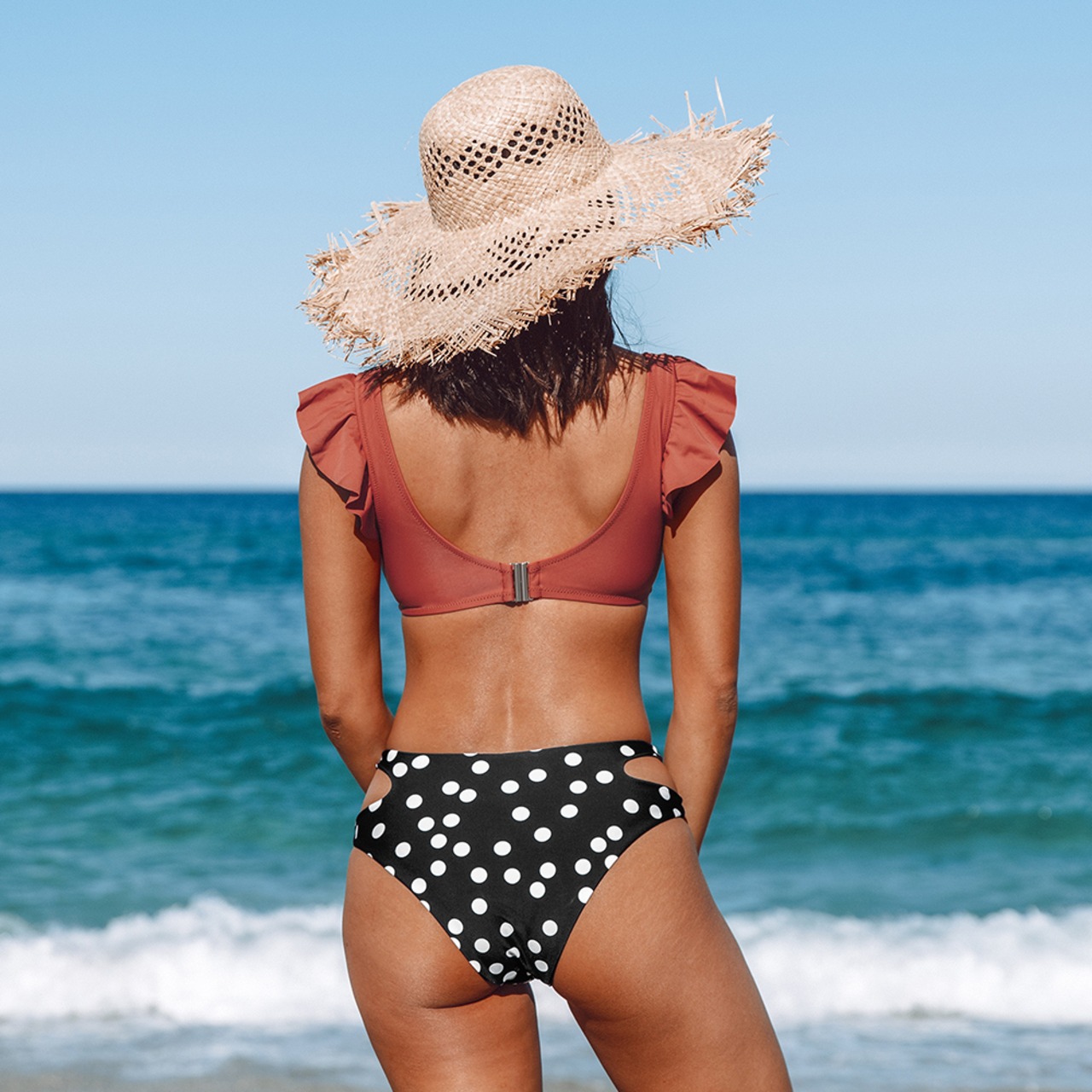 送料無料 SEASELFIEフリル蝶結び水玉ミッドウエストビキニセット水着女性セクシーツーピース水着2022水着ビーチウェア リボン AE37766686160931187