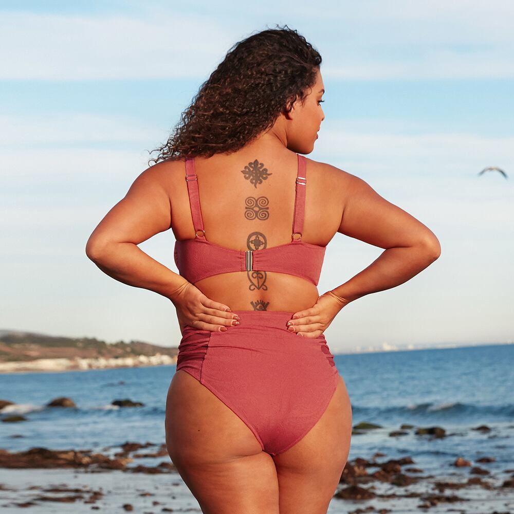 送料無料 SEASELFIEプラスサイズレッドメッシュバンドーウエストビキニセット女性セクシーラージサイズツーピース水着2022水着 大きめサイズ AE37766644058791899