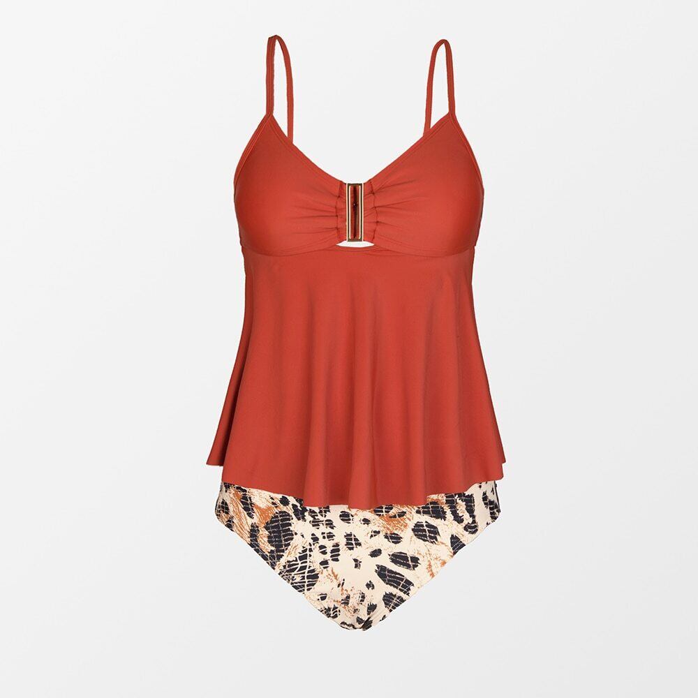 送料無料 オレンジレオパードミッドウエストタンキニ水着女性セクシーなVネックOリングビキニセット2ピース水着2022ビーチ水着 AE37766645428314515