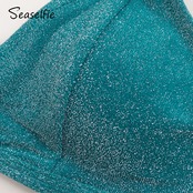 送料無料 SEASELFIEシャイニーブルーウエストビキニセット水着女性セクシーVネックツーピース水着2022ビーチ水着 AE37766633264904355