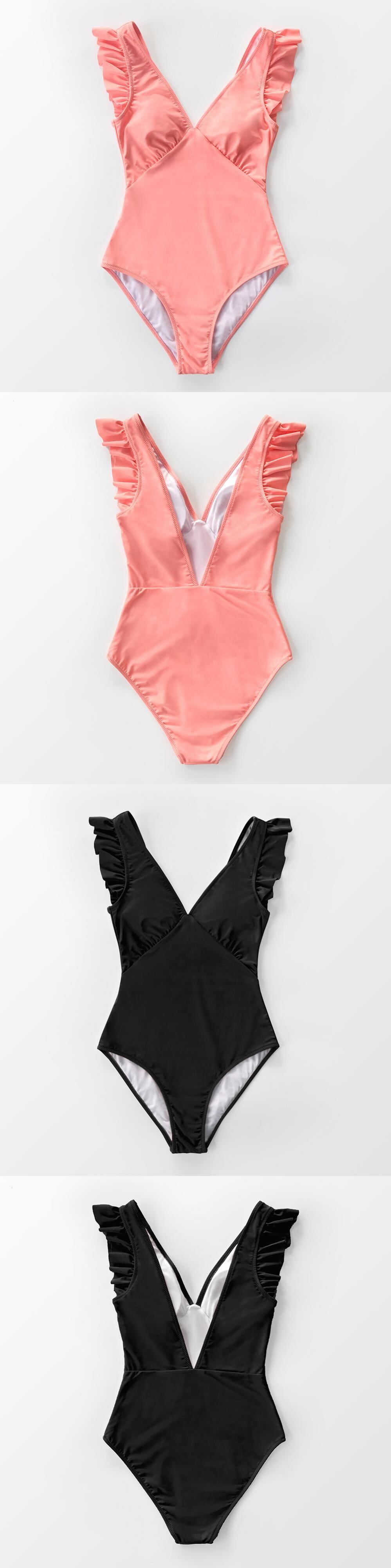 送料無料 SEASELFIEセクシーなソリッドティールVネックバックレスワンピース水着女性パッド入りカップモノキニ2022ガールズビーチ水着水着 ソリッドカラー AE37766641771129837