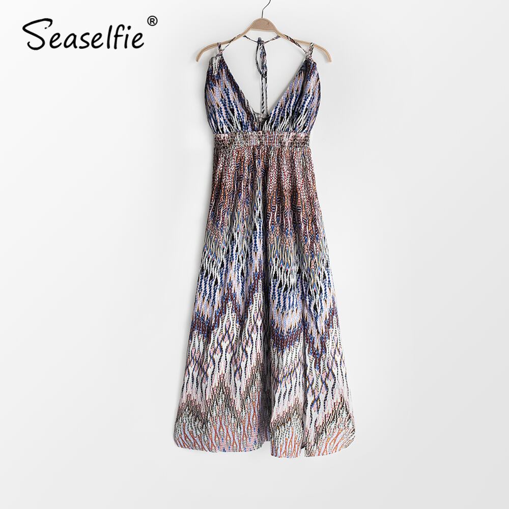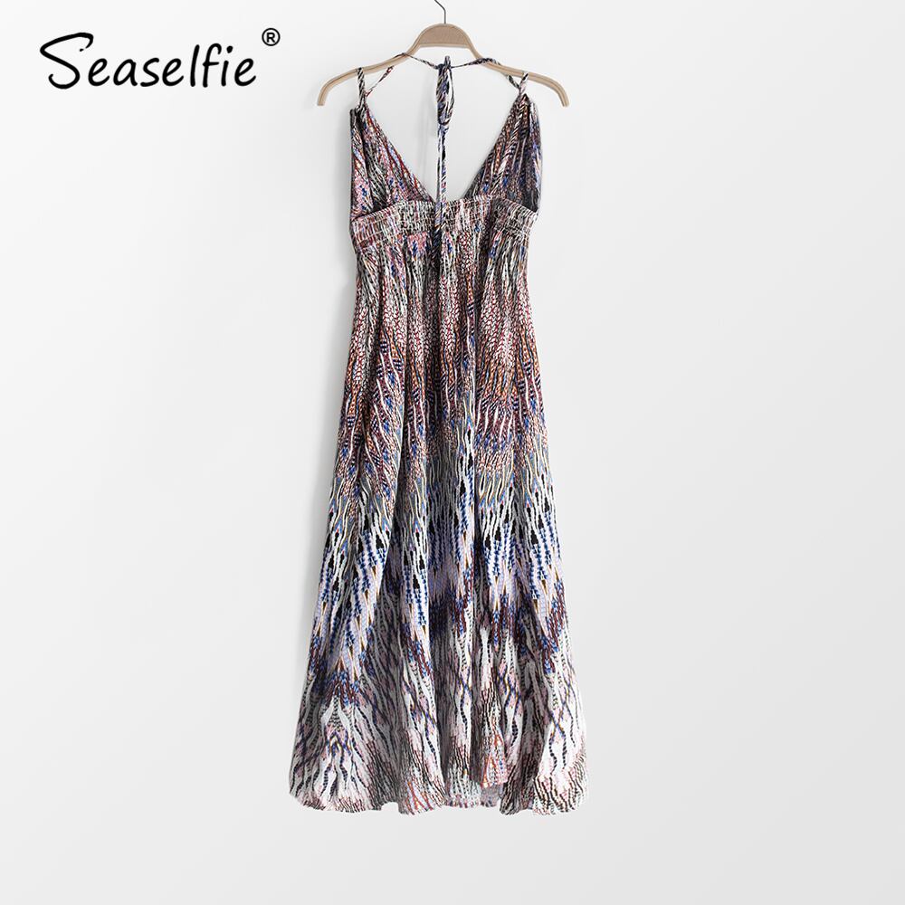 送料無料 SEASELFIE自由奔放に生きるVネックホルタービーチドレスセクシーなスプリットスパゲッティストラップミディドレス2022夏ノースリーブサンドレスVestido サマー 夏物 AE37766651624517525