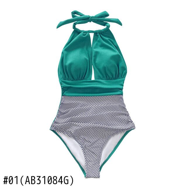 送料無料 SEASELFIEホルターバックレスワンピース水着女性セクシーな黄色のテクスチャとストライプのモノキニ2022ビーチ水着水着 レッド AE37766657784388534