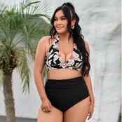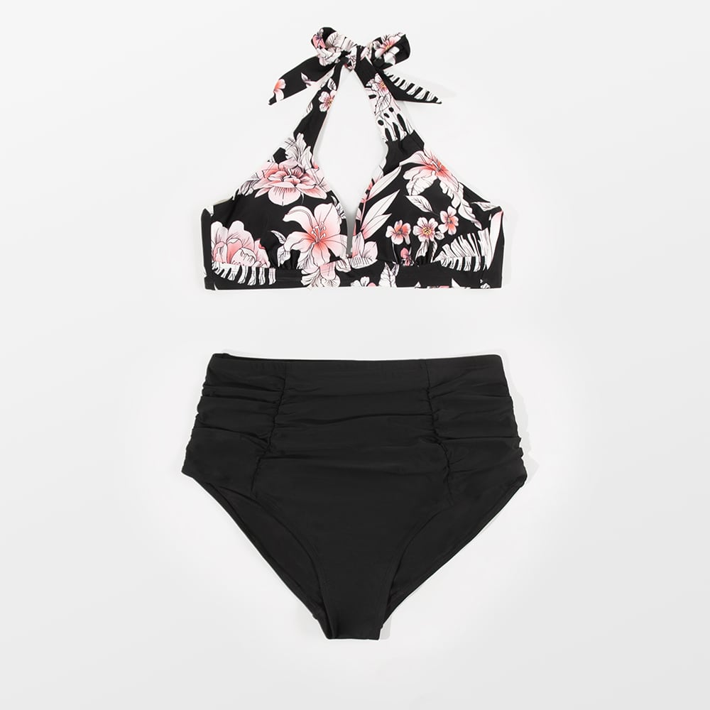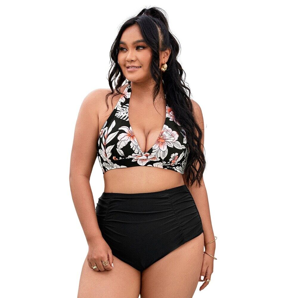 送料無料 プラスサイズプッシュアップホルターウエストビキニセット女性セクシーバックネクタイラージサイズツーピース水着2022ビーチ水着 大きめサイズ AE37766638233207425