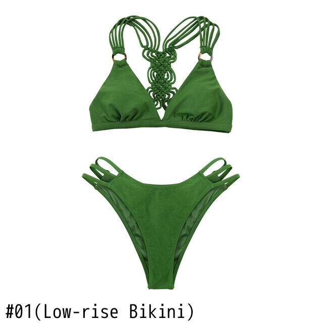 送料無料 SEASELFIEグリーン編組バックローウエストビキニセット女性セクシータンクトップツーピース水着2022女の子水着水着 AE37766636297666288