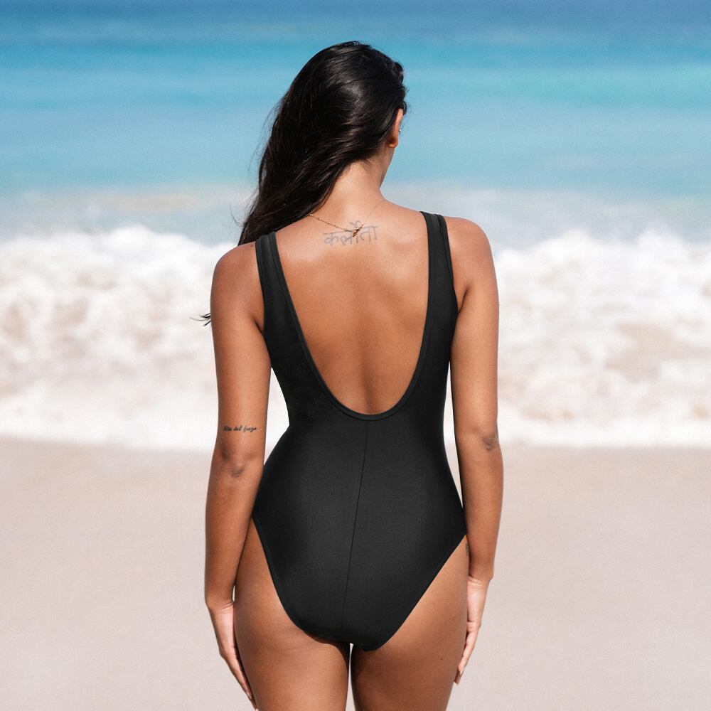 送料無料 メッシュバックレスワンピース水着女性ソリッドブラックセクシーネックモノキニ水着2022ビーチ水着ビーチウェア ソリッドカラー AE37766666541601549