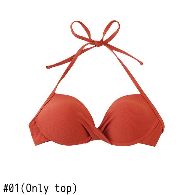 送料無料 SEASELFIEソリッドオレンジツイストホルタープッシュアップビキニトップ女性モールドカップセパレートトップシングルパッド入りブラトップ2022水着 ソリッドカラー AE37766626074039350