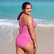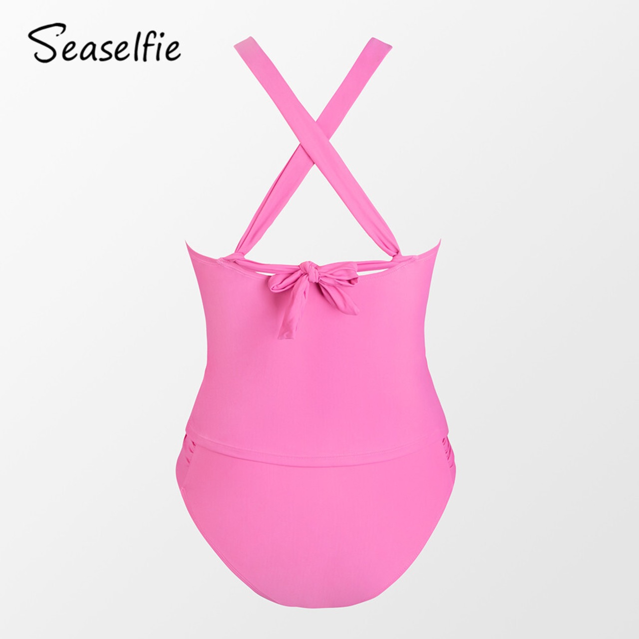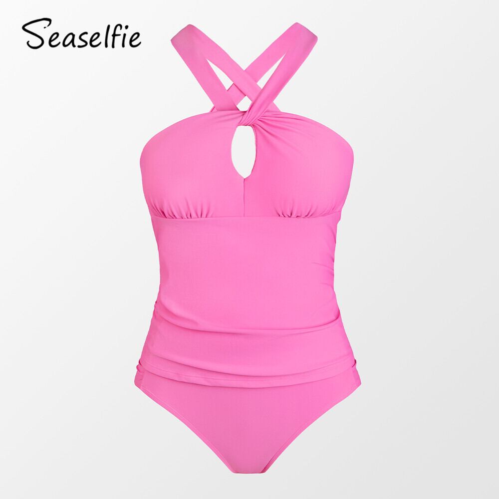 送料無料 SEASELFIEプラスサイズピンクホルターミッドウエストタンキニ女性セクシーラージサイズビキニセットツーピース水着2022水着 大きめサイズ AE37766615850037495
