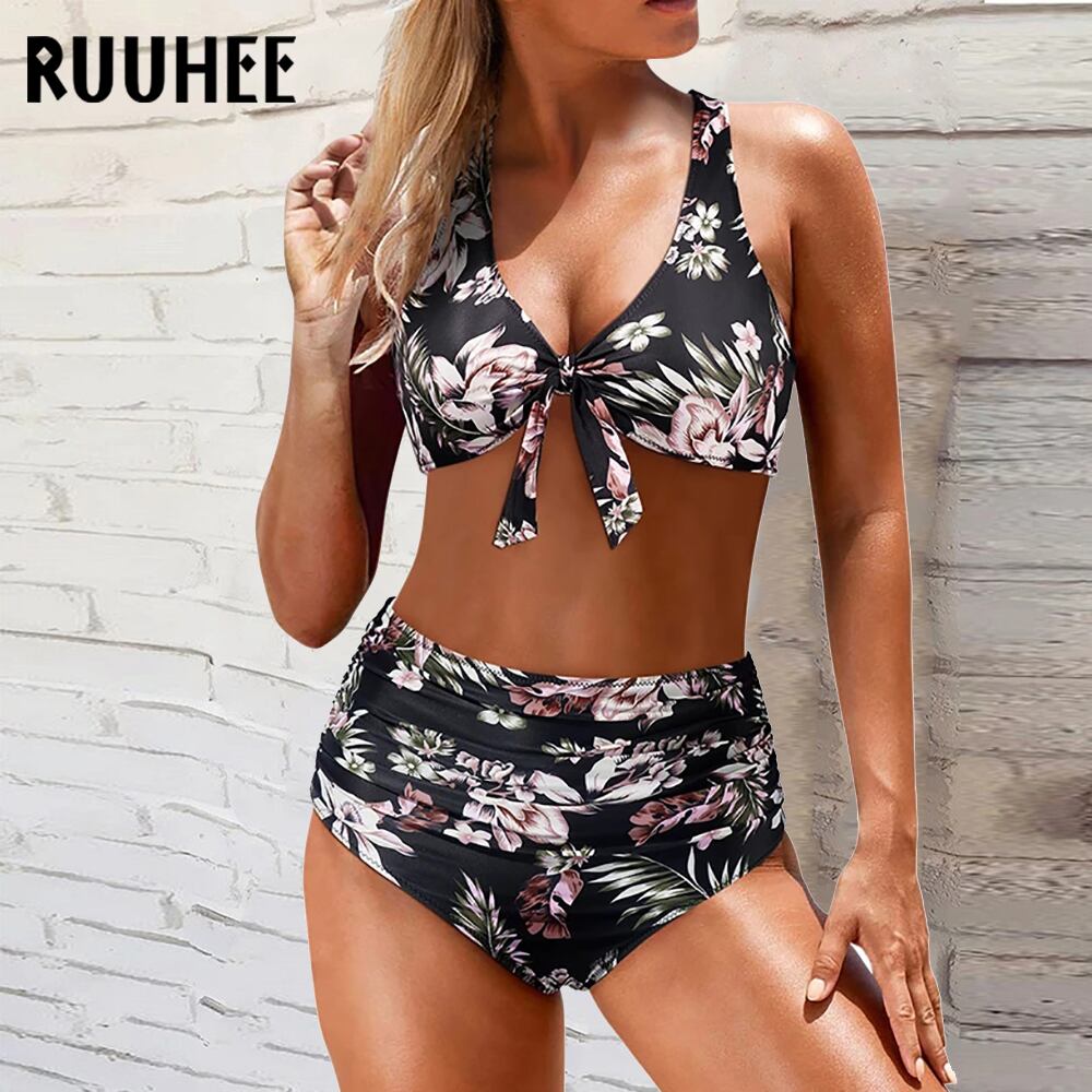 送料無料 RUUHEEレディース水着プッシュアップビキニプリントウエストビキニ水着水着ソリッドパッド入りビキニ2021レディース水着 ソリッドカラー AE377776617360248962
