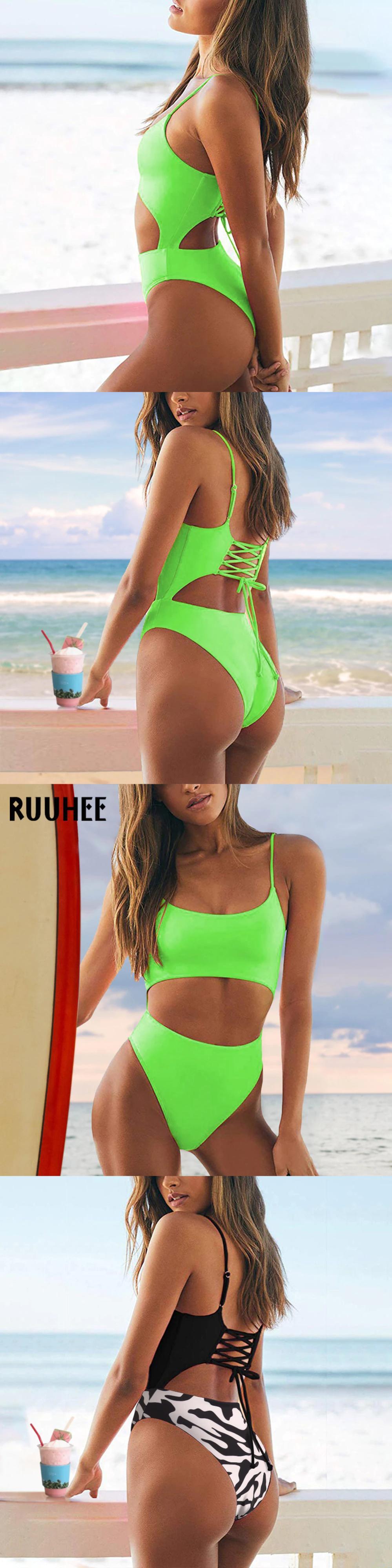 送料無料 RUUHEEワンピース水着ヒョウネノビキニ水着2021水着女性セクシーレースアップバックレス水着女性 AE377776644311341840