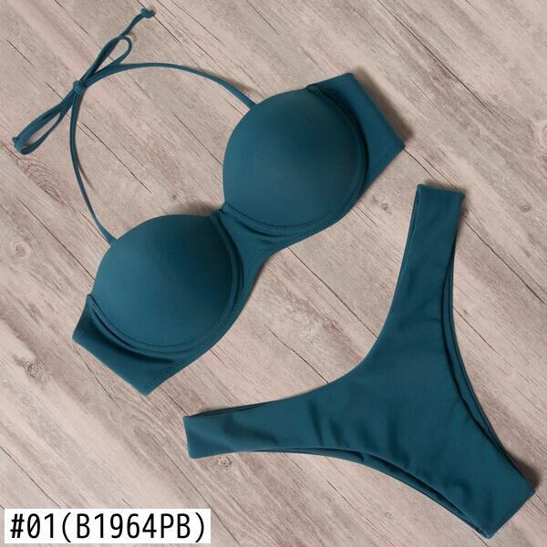 送料無料 RUUHEEブラジリアントンビキニセット2022女性プッシュアップビキニソリッド水着セクシーストラップ水着水着カットビキニ ソリッドカラー AE377776689851815219