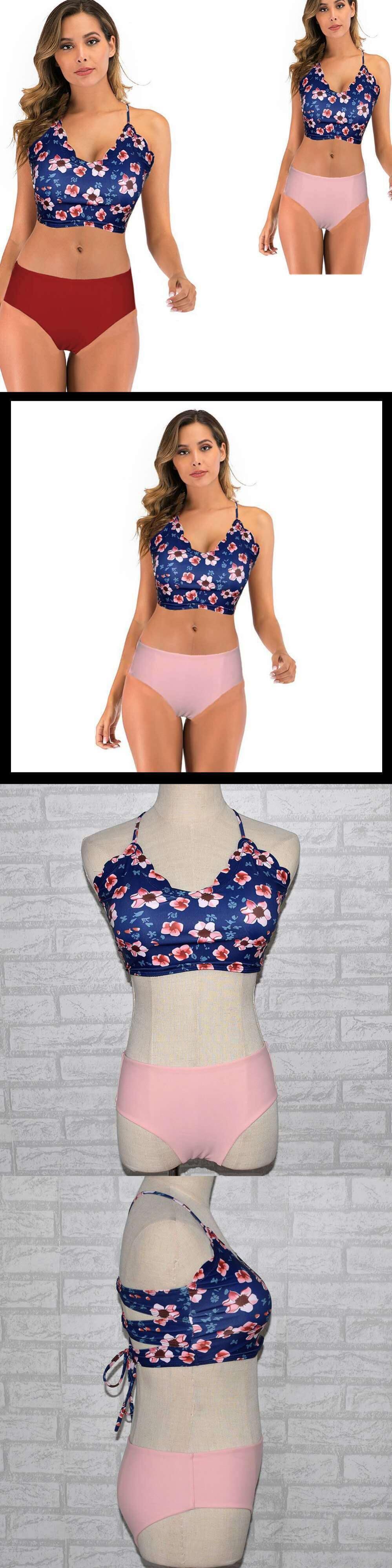 送料無料 RUUHEEウエスト水着女性パッド入りプッシュアップビーチウェアフラワープリント水着ソリッドビーチウェア水着セクシービキニ ソリッドカラー フラワーデザイン AE377776617716149831