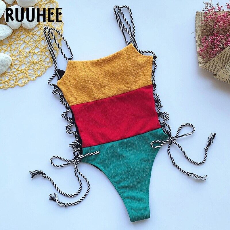 送料無料 RUUHEEワンピース水着女性ブラジリアンビキニはパッド入り水着でしっかりと押し上げます暑い夏のビーチ水着 サマー 夏物 ソリッドカラー AE377776679980041580