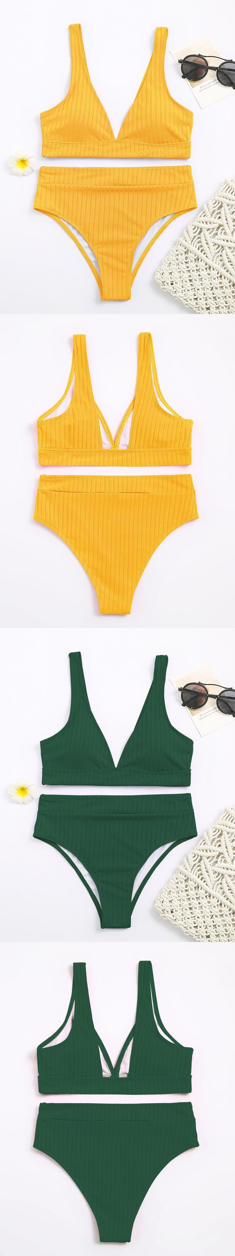 送料無料 RUUHEEソリッド水着女性セクシーレオパードホワイトビキニ2021ウエスト水着ストライプビキニプッシュアップ水着 ソリッドカラー AE377776640901666016