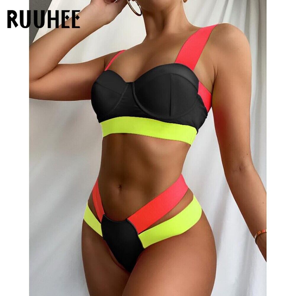 送料無料 RUUHEEビキニ女性プッシュアップパッチワークネノ水着女性セクシー2021水着ビーチウェアサマービキニカットビキニセット 夏物 AE377776671555129284
