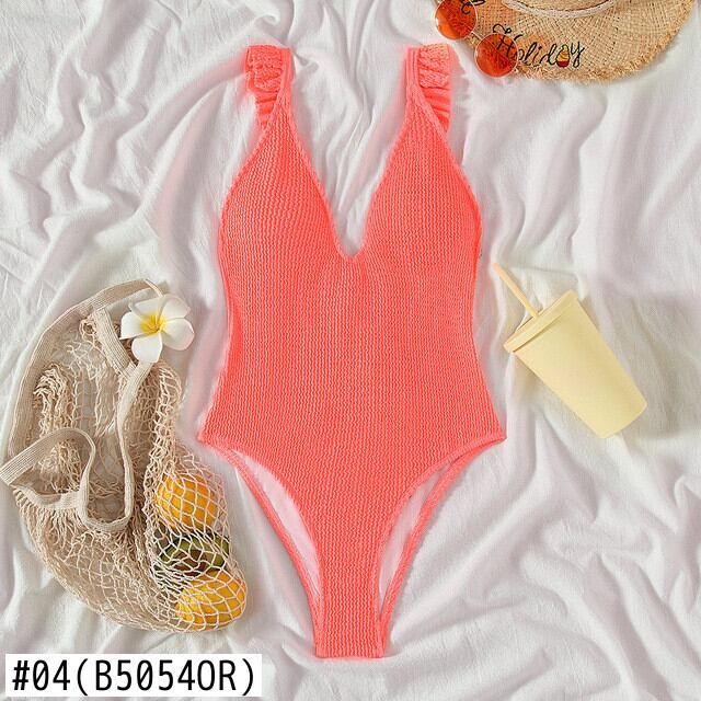 送料無料 RUUHEE水着ワンピース女性水着フリルサマービーチウェアソリッドビーチ水着ワンピース水着セクシービキニ ラッフル 夏物 ソリッドカラー AE377776611587638302