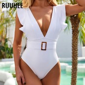 送料無料 RUUHEEワンピース水着女性フリルソリッドプッシュアップパッド入り水着スイミングビーチウェア2021セクシー水着ビキニ ソリッドカラー AE377776616900687733