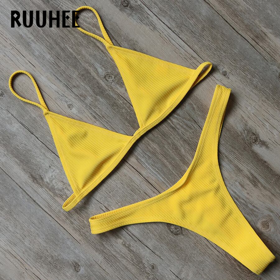 送料無料 RUUHEEセクシーなブラジルのビキニセット2019水着女性水着水着マイクロビキニソリッドビーチウェアパッド入り ソリッドカラー AE377776691593155830