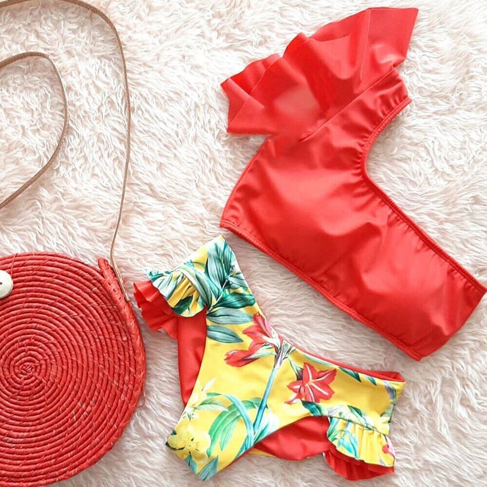 送料無料 2021ツーピース女性フローラルプッシュアップパッド入りブラフリルバンデージビキニセット水着水着水着ビーチウェアビキニ ラッフル 花柄 AE32211336625581505