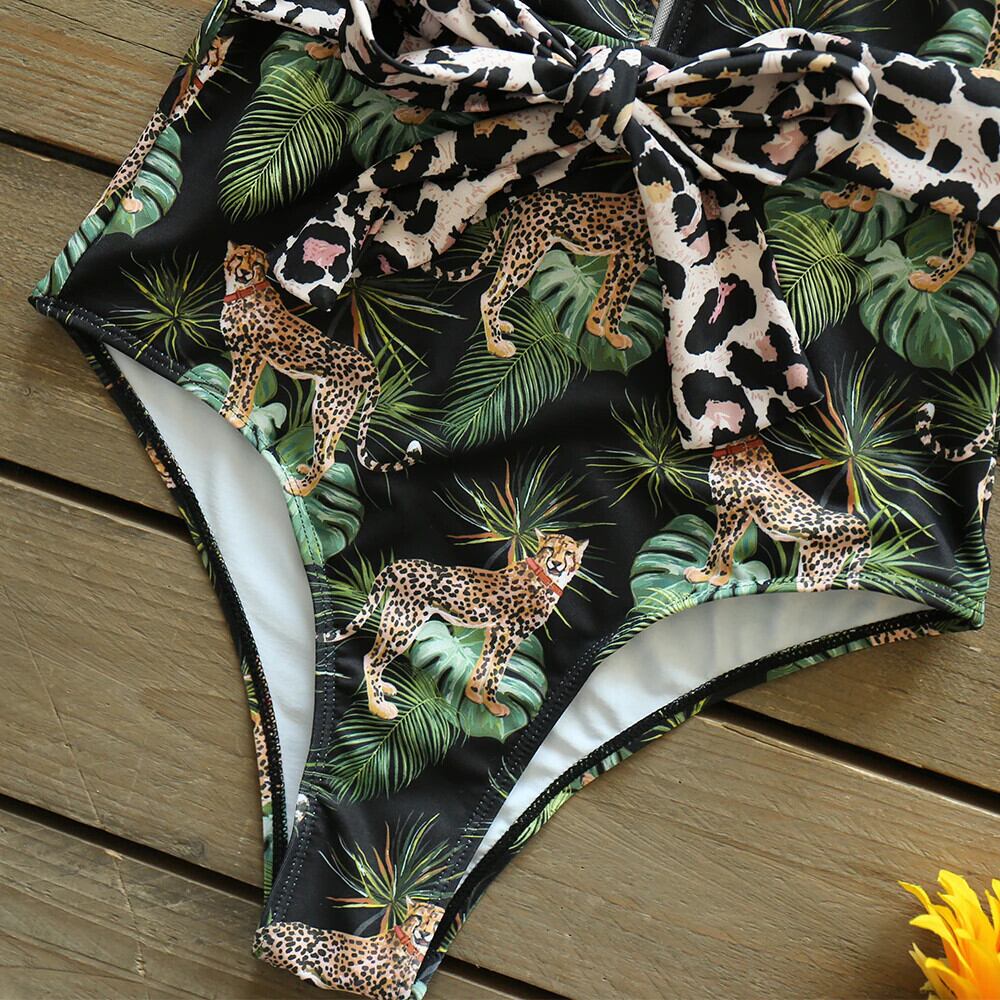 送料無料 2022セクシーなワンピース水着女性ストラップレオパードプリント水着フリル水着背中の開いたビーチウェアモノキニ AE322113332828702242