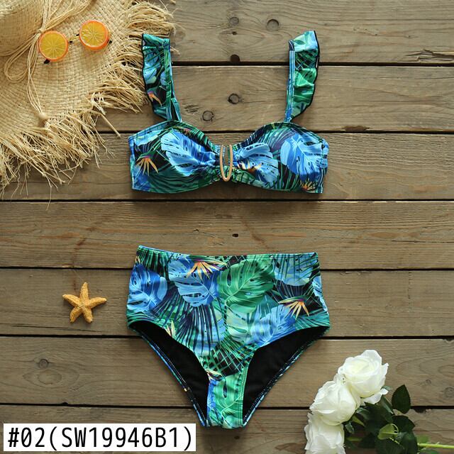 送料無料 2021セクシーウエストフリルビキニセット水着女性ツーピース水着ストラッププリントフローラルビーチウェア水着ビキニ 花柄 AE322113397764755144