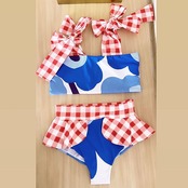送料無料 2021セクシーウエストビキニセットフリルプリントフローラルバンドー水着ストラップ付き水着女性水着ビーチウェアビキニ 花柄 AE322113360740278877