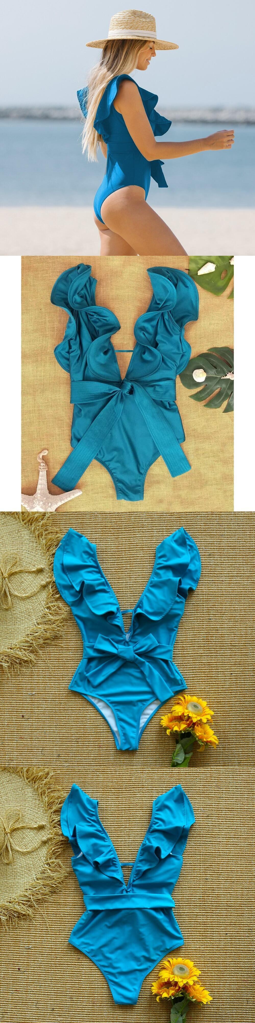 送料無料 2020セクシーフリルプリントフローラルワンピースストラップスリミング水着レディース水着ディープV水着ビーチウェアモンキニ 花柄 AE322113380304161663