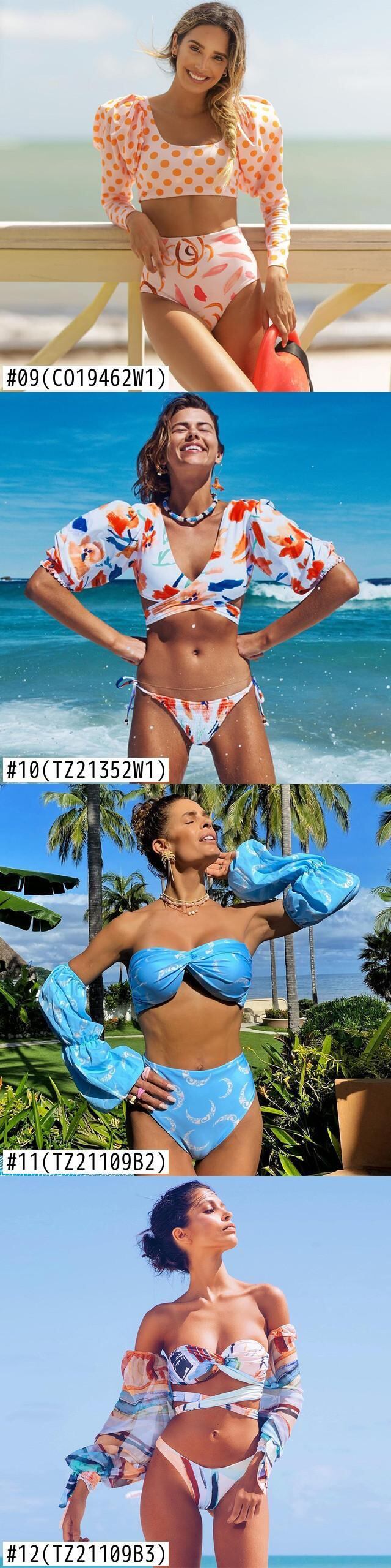 送料無料 ウエストビキニ2021長袖水着オフショルダー水着女性バブルスリーブビキニセクシーメッシュビーチウェア ロング AE322113360369679112