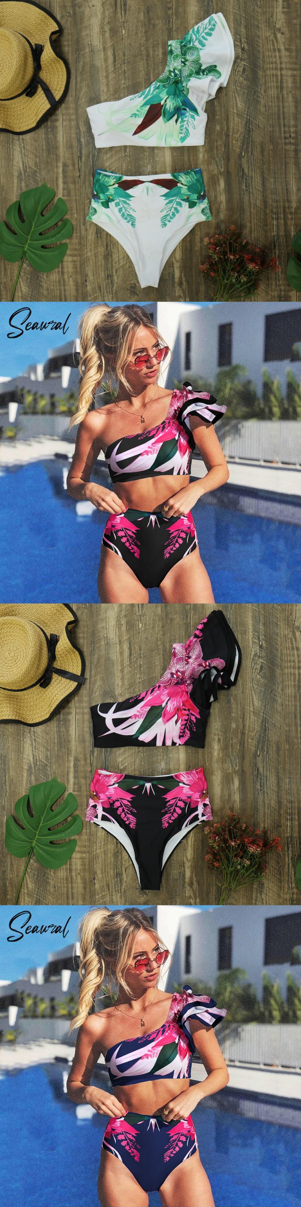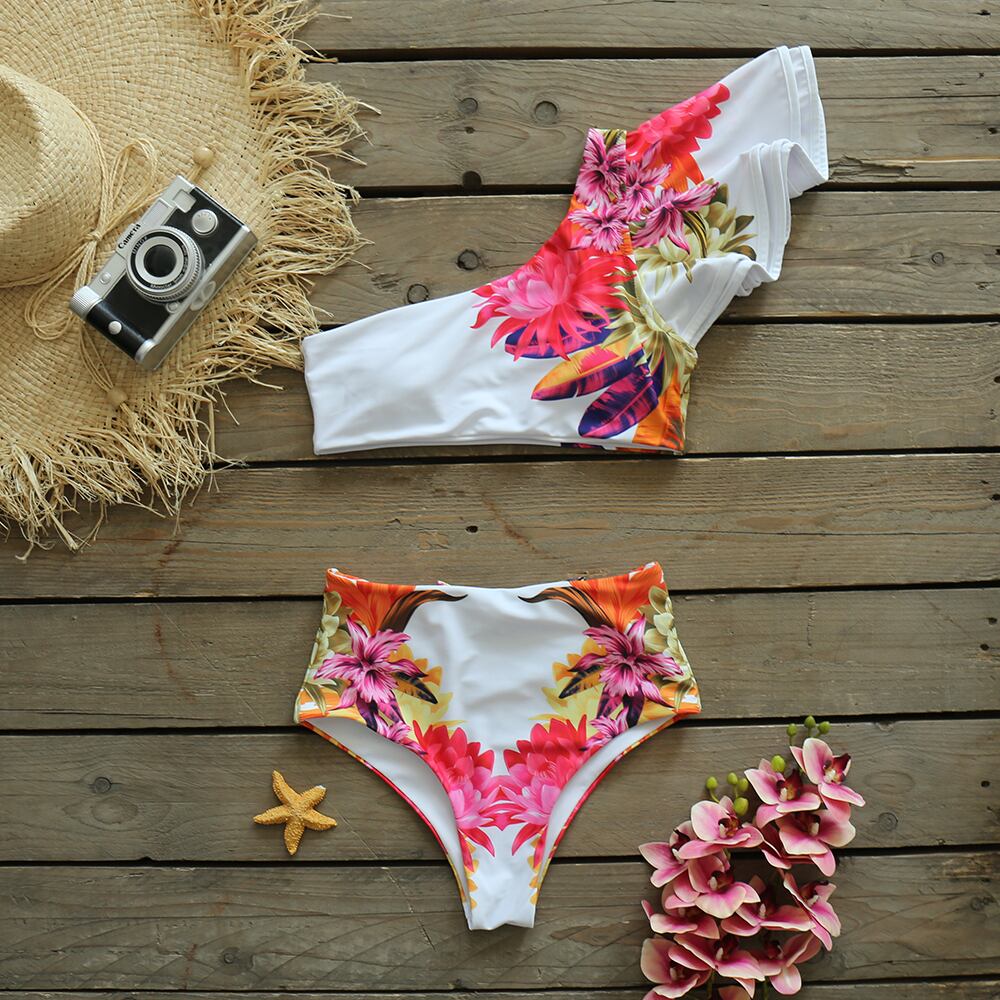 送料無料 2022ウエストセクシーフリルビキニセット水着ワンショルダー水着女性プリント花柄水着ビーチウェアビキニ AE32211338363232353