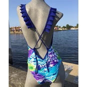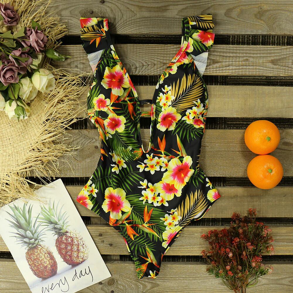 送料無料 2020セクシーフリルドットプリントフローラルワンピース水着水着女性バックレス水着ビーチウェアサマーモノキニ 夏物 花柄 AE322113390702442280