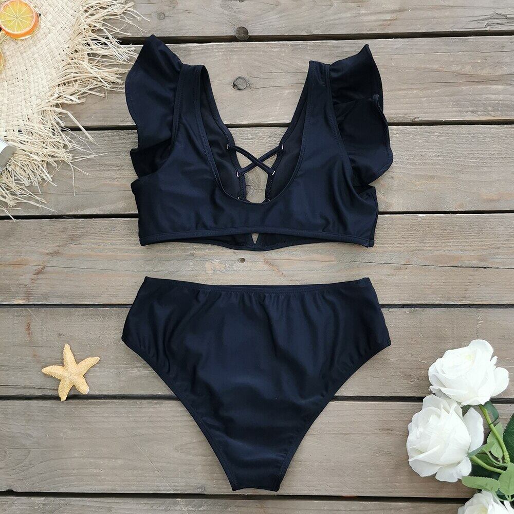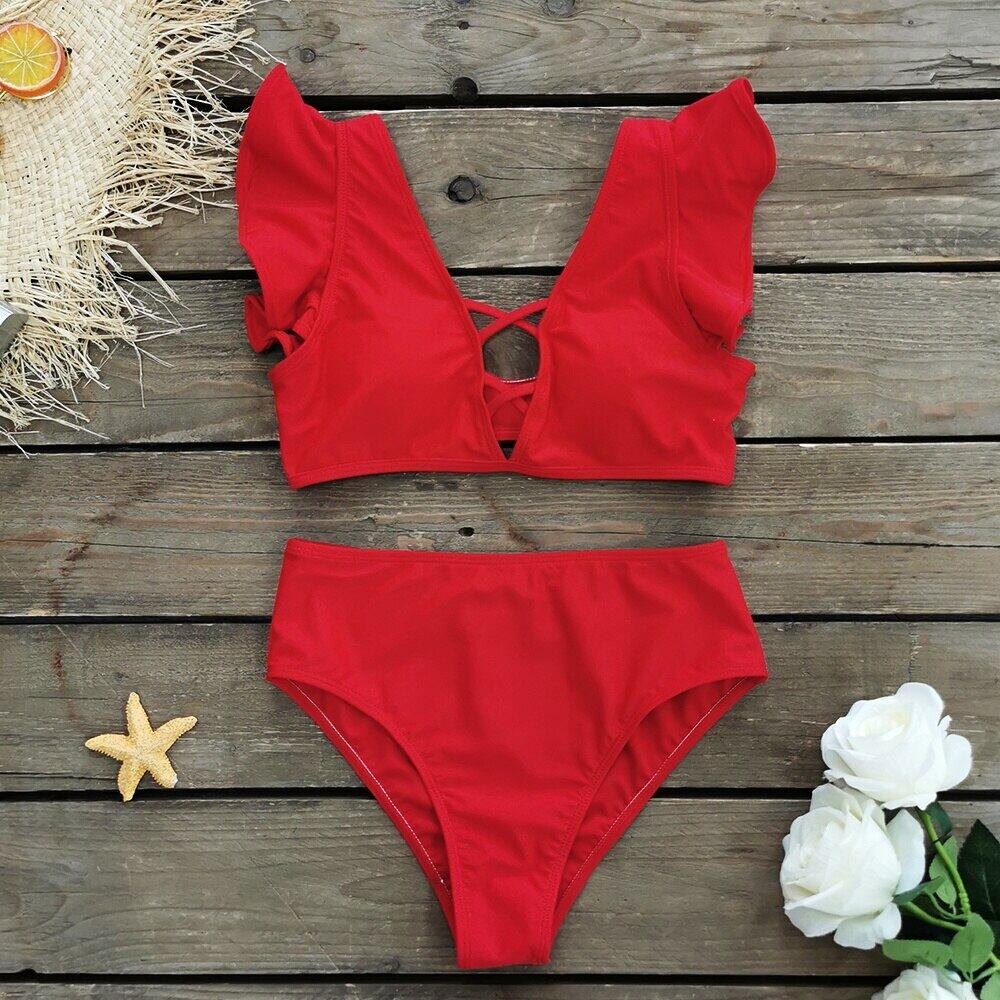 送料無料 2022セクシーなビキニセットウエスト水着女性水着フリルソリッドバンデージ水着ビーチウェア夏の水泳ビキニ サマー 夏物 ソリッドカラー AE322113359063432538