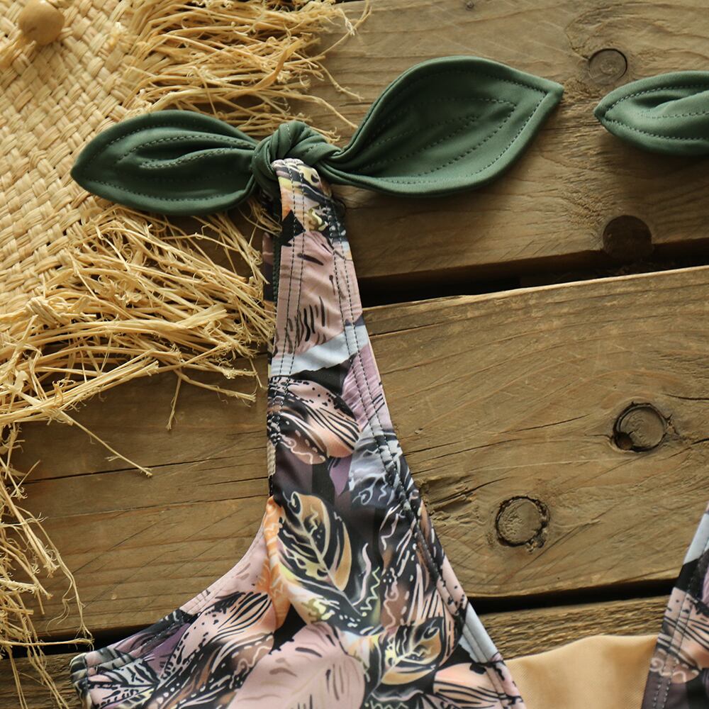 送料無料 2022セクシーフリルプリントフローラルワンピース水着バックレスストラップ水着女性ソリッドDeepVビーチウェア水着モノキニ 花柄 ソリッドカラー AE322113354798155518