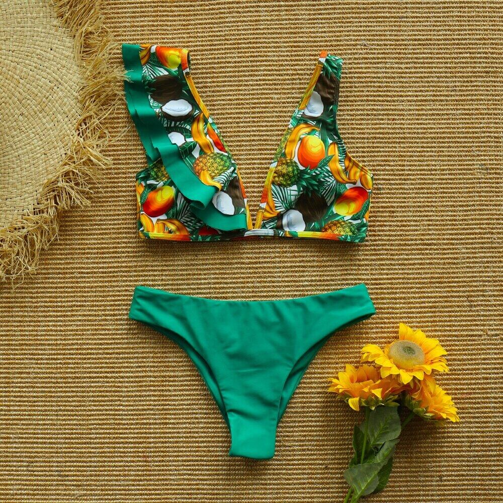 送料無料 セクシーフリルビキニセット2021ブラジリアンVネックプッシュアップ水着女性水着水着サマービーチウェアビキニ 夏物 AE322113397467504203