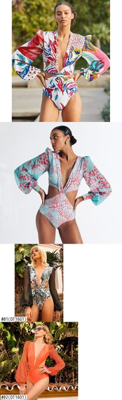送料無料 2022ワンピース水着プリントレトロ長袖水着女性包帯花柄水着ストラップバックレスビーチウェア ロング AE322113324458359155