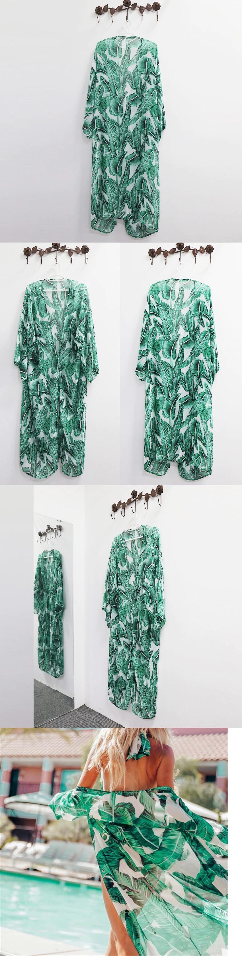 送料無料 葉プリントビキニビーチカバーアップチュニックビーチロングカフタンビキニカバーアップローブデプラージュサロンビーチ水着カバーアップ AE322113336703307107