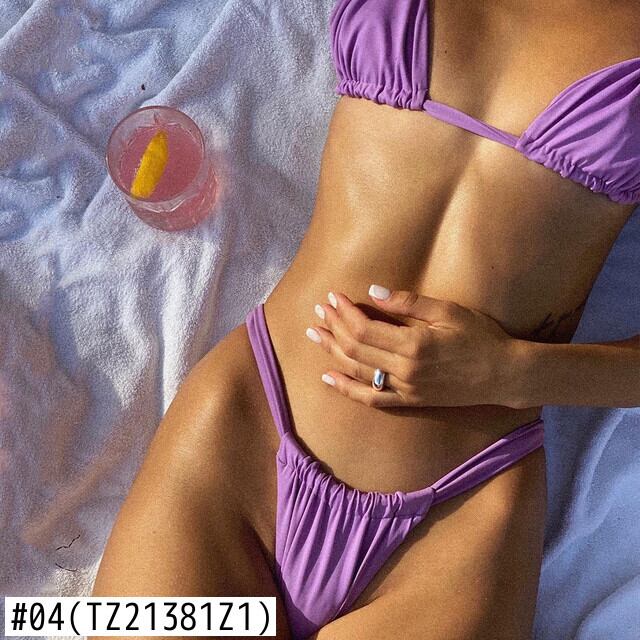 送料無料 Pleasted Bikinis Colaless Swimsuit Triangle Bikini Set Women Swimwear Halter Bathing Suits Bandage Beachwear Brazil ビキニ ビーチ AE3553378482643391