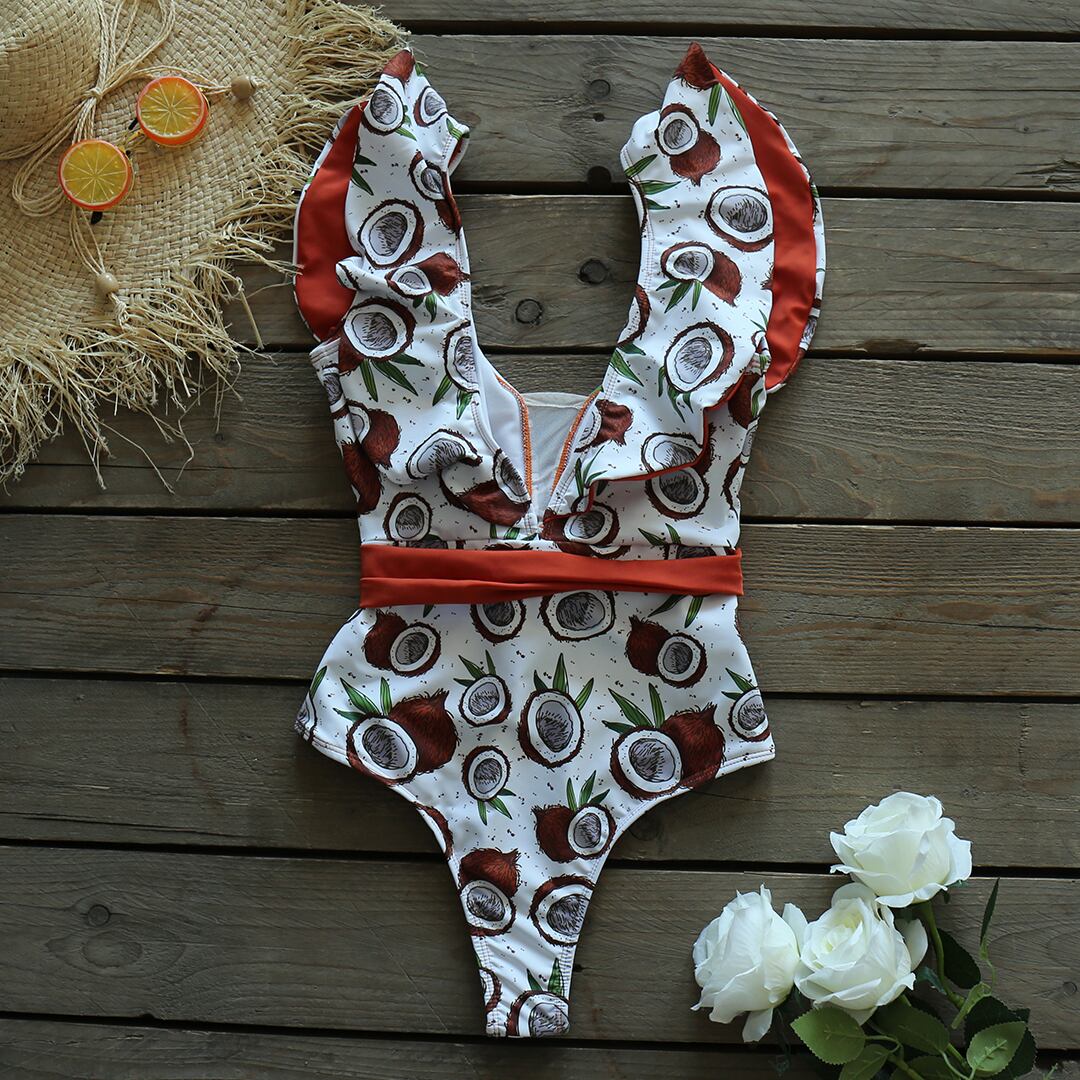 送料無料 2022Vネックフリル水着プッシュアップワンピース水着ベルトビーチウェアバックレスモノキニビーチウェア水着 ハーネス AE3553333283303016