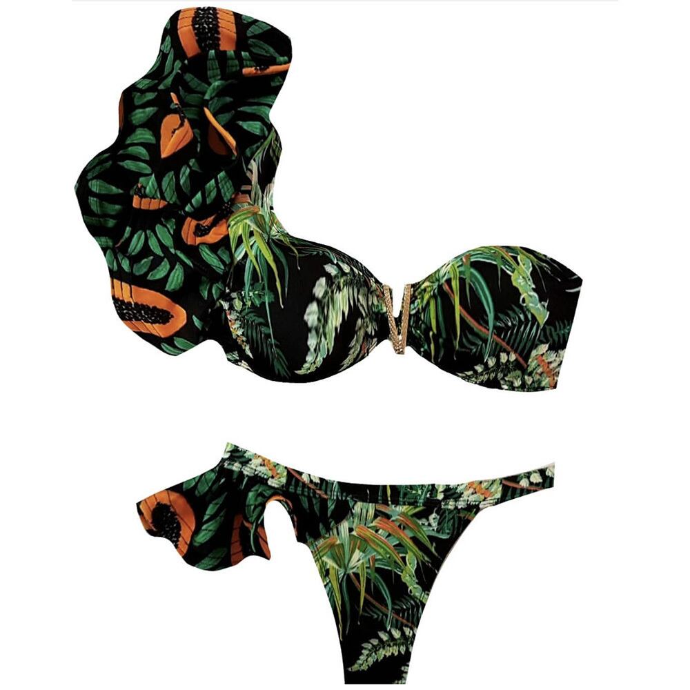送料無料 ワンショルダー水着プリントビキニブラジリアンビキニセット水着水着サマービーチウェアビキニ女性 夏物 AE3553385596655045