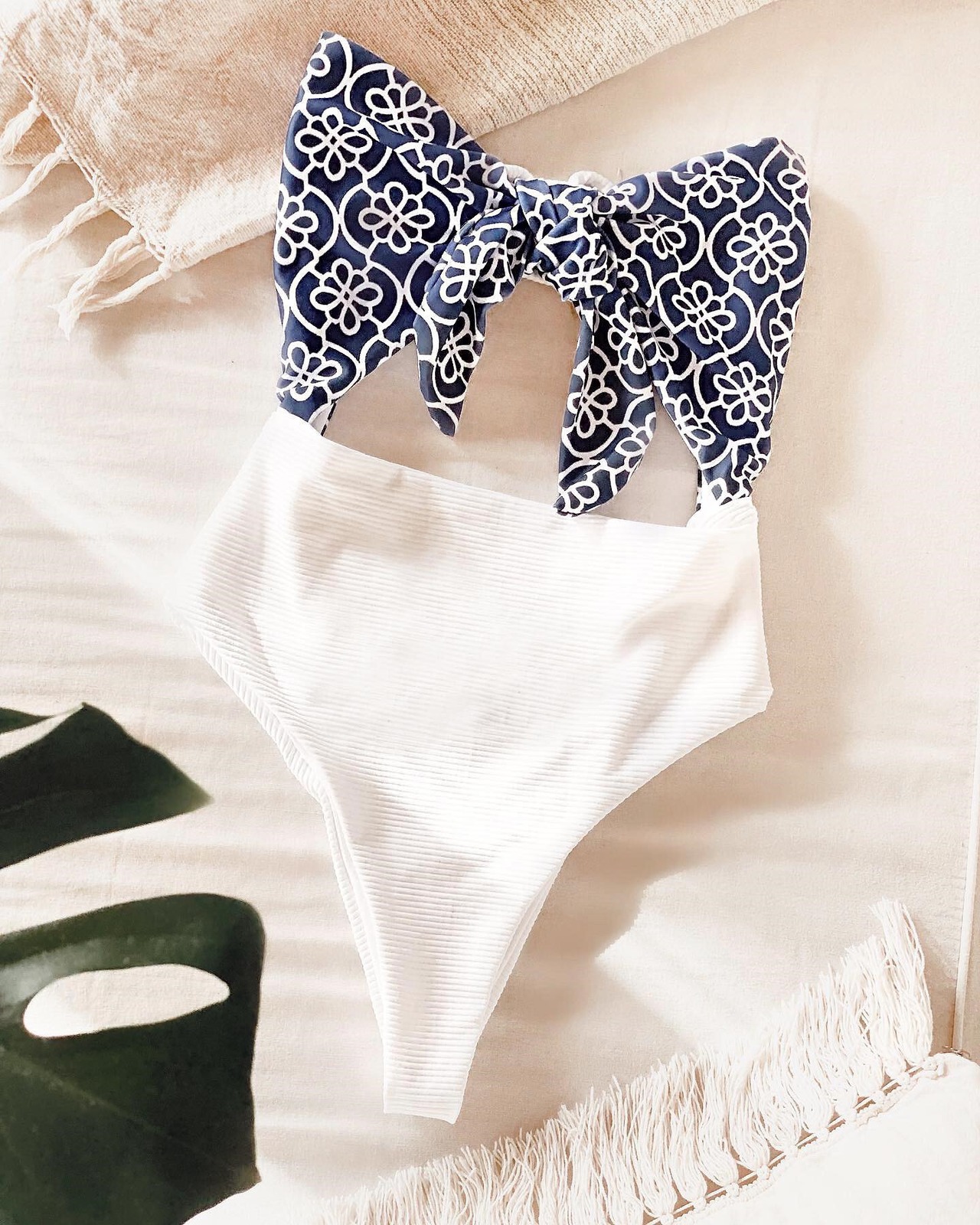 送料無料 2022セクシーな中空アウトプリントワンピース水着女性水着水着背中の開いたビーチウェアモンキニ AE3553389617716902