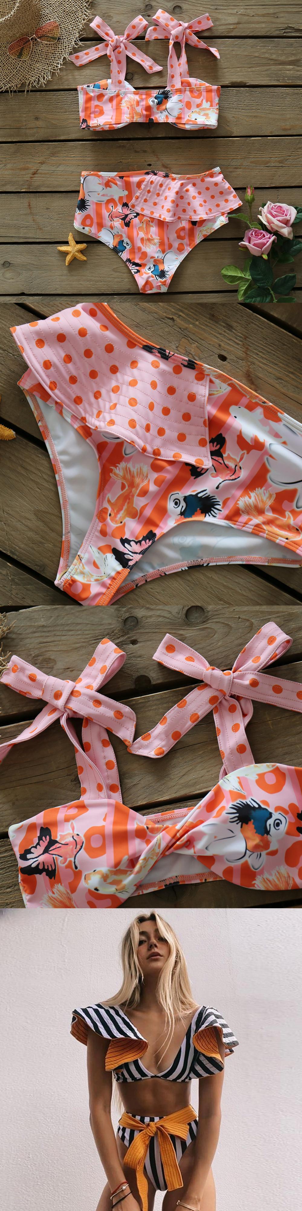 送料無料 ツーピースレディースフローラル2021プッシュアップパッド入りブラフリル包帯ビキニセット水着水着水着ビーチウェアビキニ ラッフル 花柄 AE355333053643679