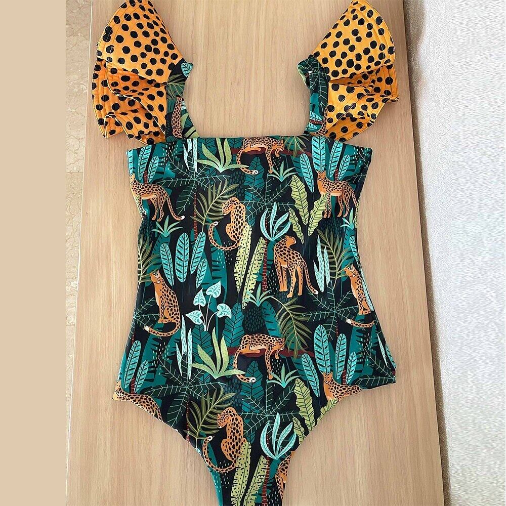 送料無料 2022セクシーフリルヒョウ柄フローラルバックレスワンピース水着水着女性水着ビーチウェアサマーモノキニ 夏物 花柄 AE3553339672091691