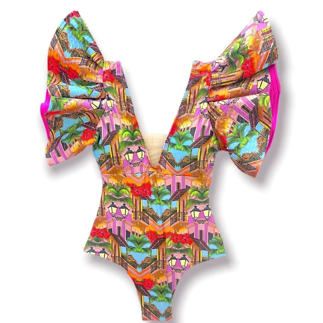 送料無料 2022フローラルプリントディープVネックフリル水着プッシュアップワンピース水着ビーチウェアバックレスモノキニビーチウェア水着 花柄 AE3553374006006769