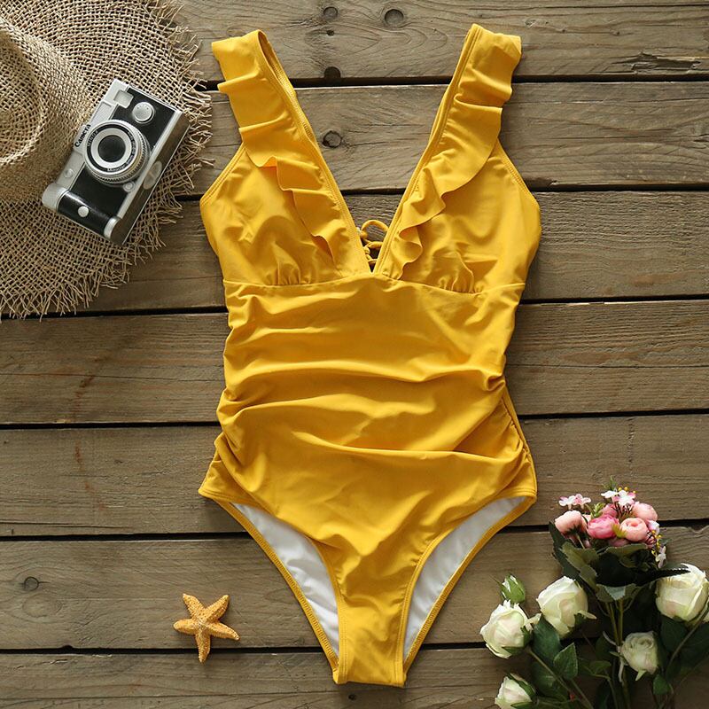 送料無料 SPORLIKE心臓発作ファルバラワンピース水着女性フリルVネックモノキニ2021ガールズビーチ水着水着S-2XL AE3553362440263052